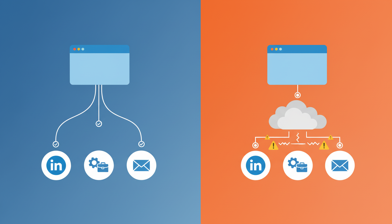 Website blocking hits cloud automation hard. Remote browser fingerprints trigger anti-bot defenses on LinkedIn and most sales tools. Local execution appears identical to your normal browsing, avoiding detection entirely.